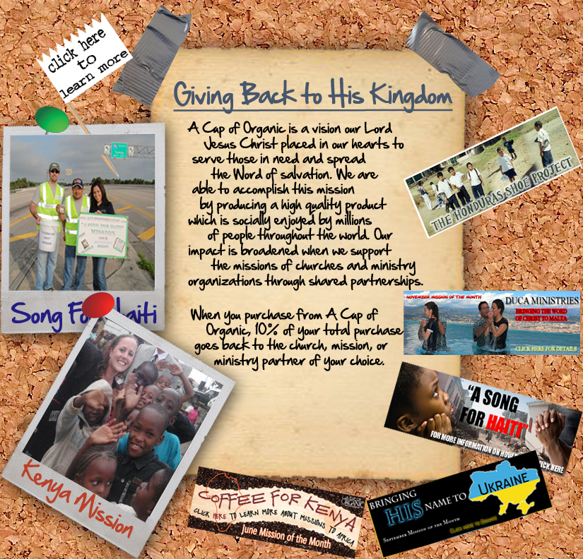From the family’s farms in Honduras, comes a coffee brewer with high-quality coffee, and all Organic too. A Cup of Organic has built its reputation on delivering the best natural coffee for you to enjoy … and gives back to the community with a charitable share of its profits. When you purchase from A Cup of Organic’s website, 10% of your total purchase will go towards the mission of the month.